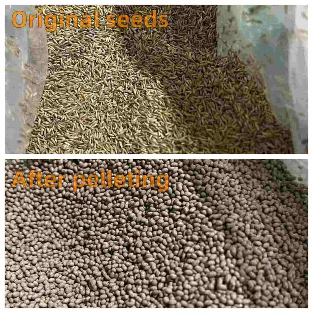 Enhanced Germination: Field trials show a 12-18% increase in germination rates due to improved moisture retention and oxygen permeability. Precision Agriculture: The uniform coating (0.2–0.5 mm thickness) ensures consistent seed size, enabling mechanized planting with 95% spacing accuracy. Disease Prevention: Integrated biocides (e.g., Bacillus subtilis) reduce seedling mortality by 30-50% in pathogen-rich soils.