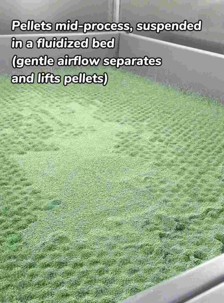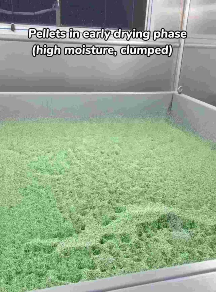 Mid-Process: Dynamic airflow lifts and separates pellets, preventing clumping.